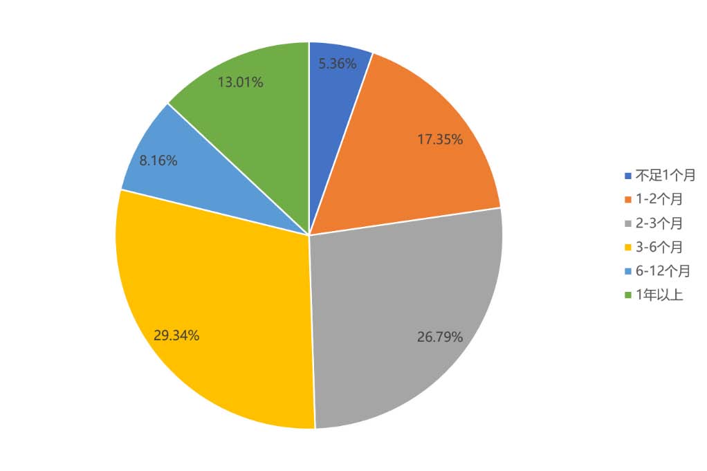 ? ? ??2、從企業的資金維持狀況來看,雖然中小規模民營文化企業占大多數,但是能堅持3-6個月的占29.34%,能堅持6-12個月的有8.16%,能1年以上有13.01%,合計超過百分之五十。資金只能堅持2個月以內的約占22%。
